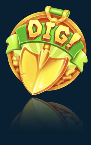 - Wild/Scatter: Skovlen med ordet “DIG!” indgraveret, fungerer både som Wild og Scatter. Dvs symbolet i sig selv substituerer for alle andre symboler, og samtidig kan give adgang til Free Spins. Derudover giver symbolet gevinster på mellem 0.2x og 500x din indsats.