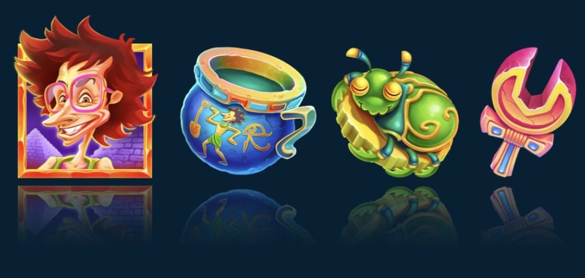 - Digger: Hovedkarakteren i spillet, den skøre arkæolog, giver dig gevinster på mellem 1x, 10x, 100x eller 500x din indsats.