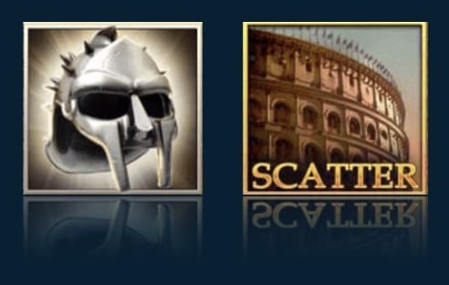 - Wild: Gladiatorhjelmen fungerer som Wild og erstatter andre symboler undtagen Scatter.