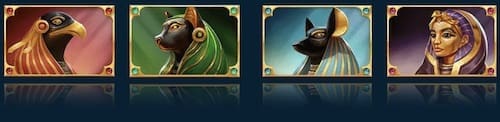 - Anubis og Horus: De 2 mest værdifulde symboler i spillet giver dig mellem 2x, 6x og 20x din indsats igen.